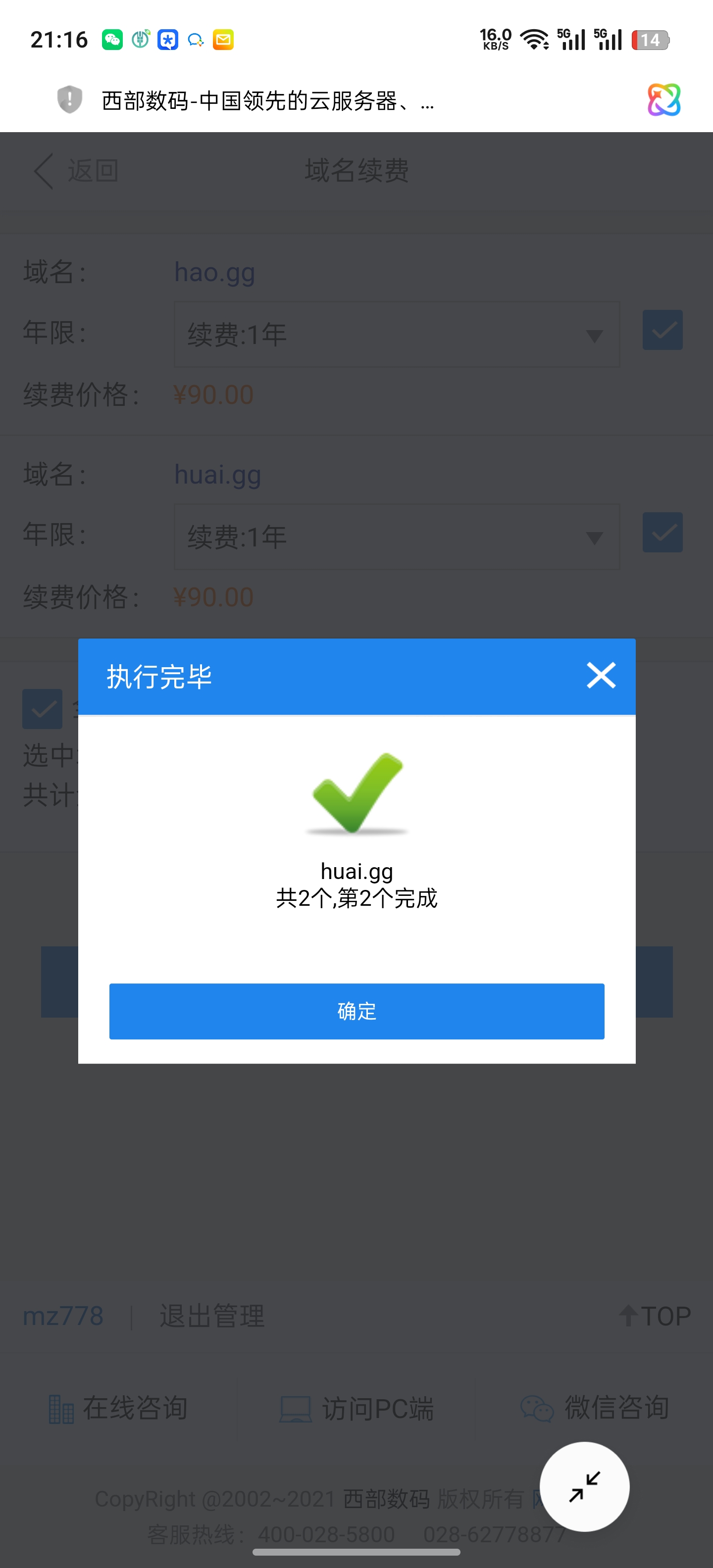 并且我要在这段时间内把我的两个域名,包括本站的续费了一下